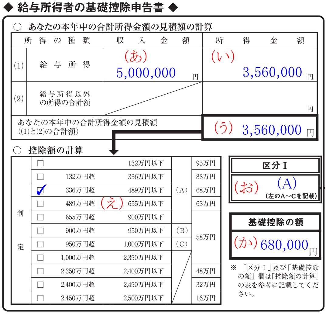 自分の所得(基礎控除申告書)