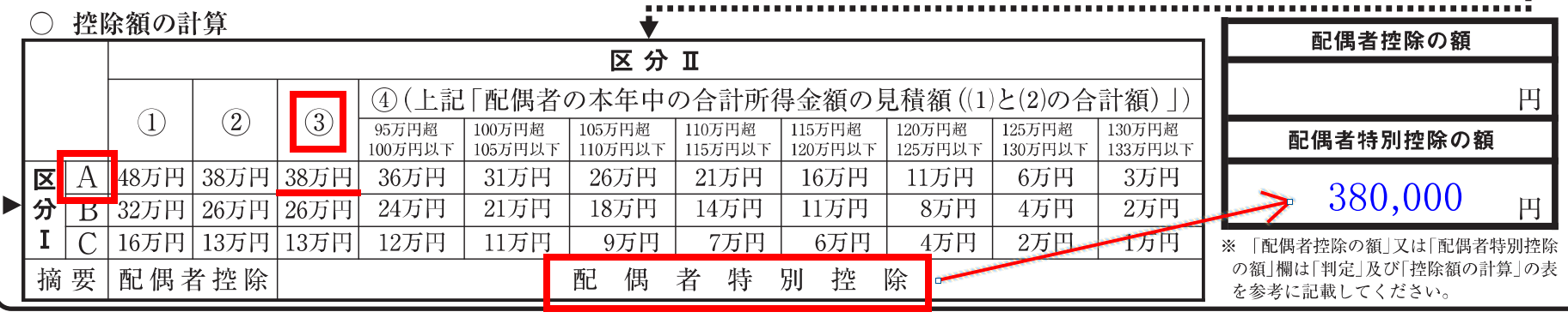 この時点で、「区分Ⅰ」「区分Ⅱ」「配偶者の所得」が判明しているはずです。