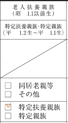 よって該当すれば「同居老親等」にチェックをつけ、該当しなくても老人扶養親族であれば「その他」にチェックをつけます。