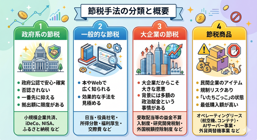 ※政府系の節税は基本中の基本であるため個人の節税も含まれています。